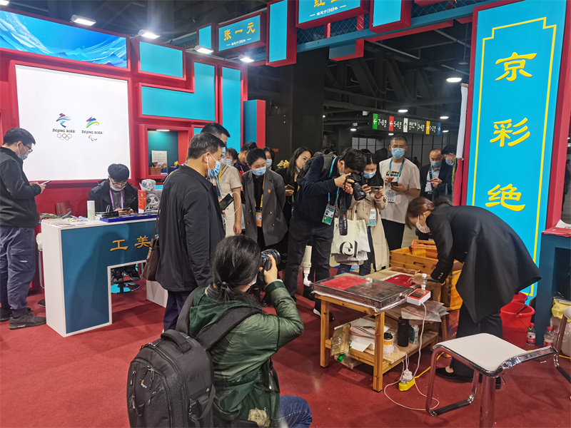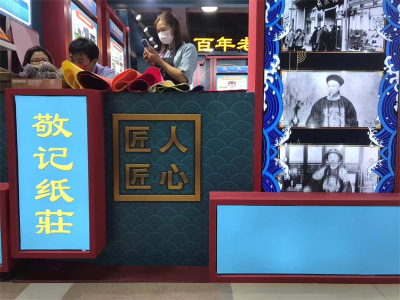 人文交流區(qū)E2區(qū)熱鬧非凡,現場了解傳統手工紙制作技藝。